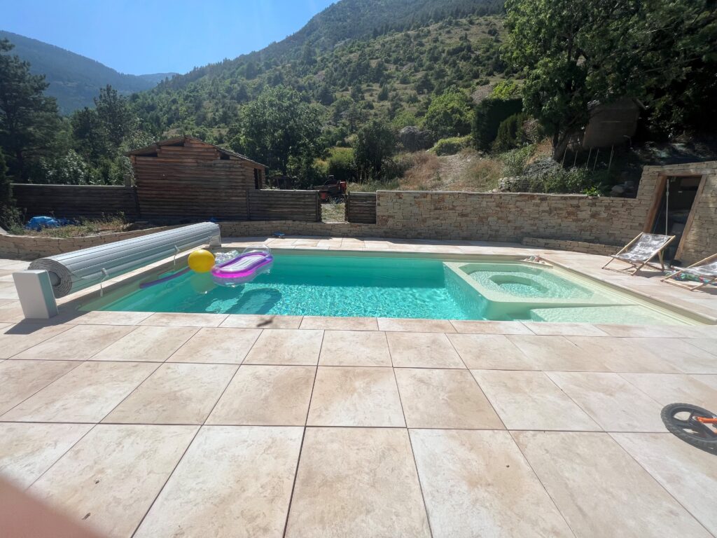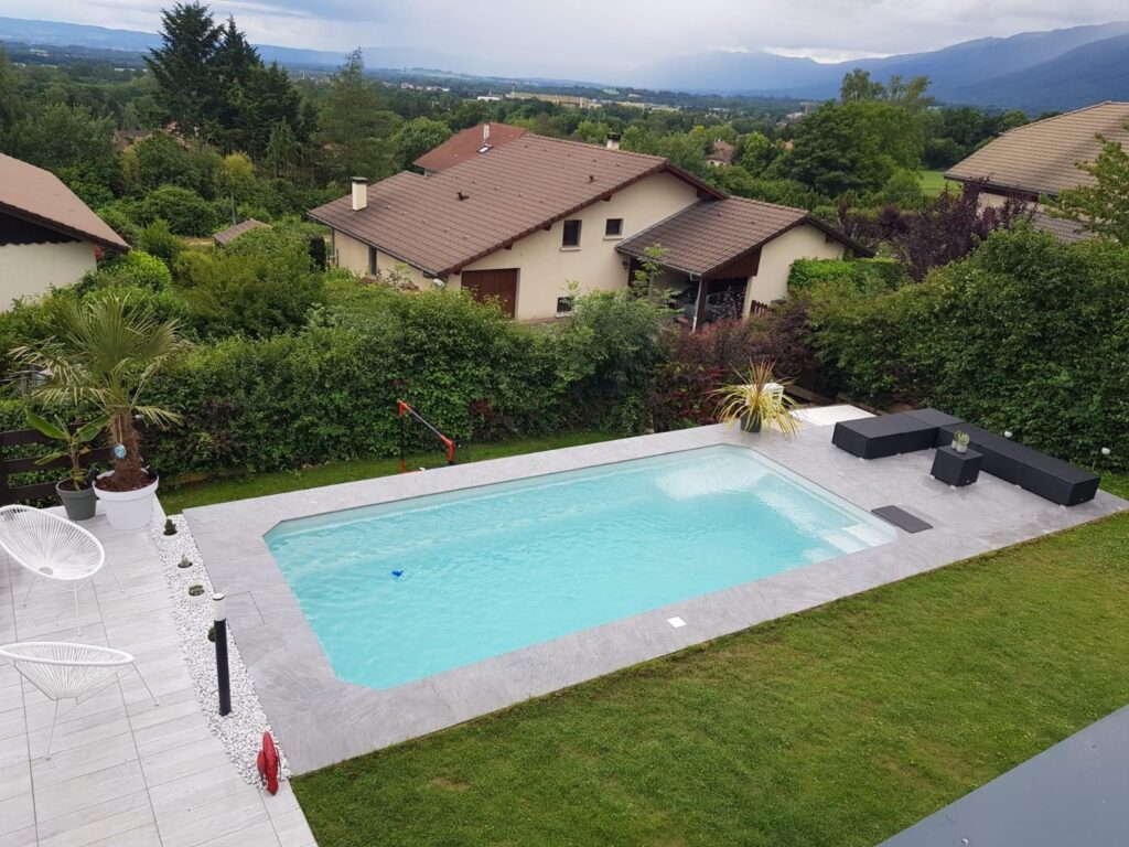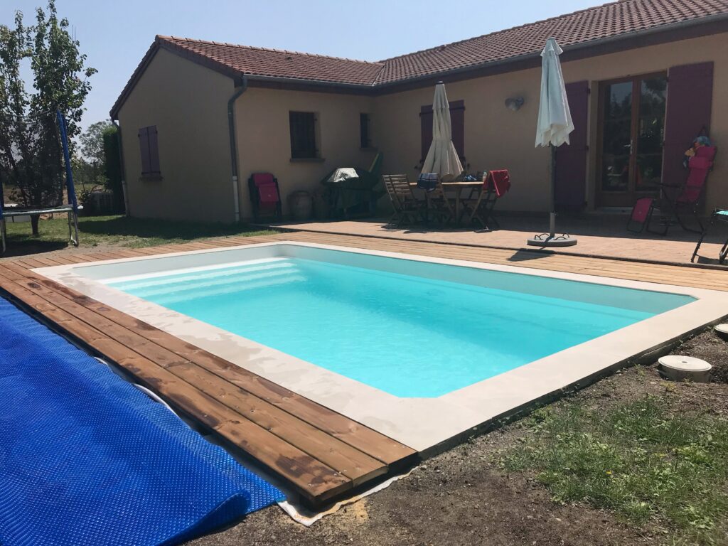Équipements premium : margelles imitation pierre naturelle, volets roulants, couvertures d’hivernage, nage à contre-courant.